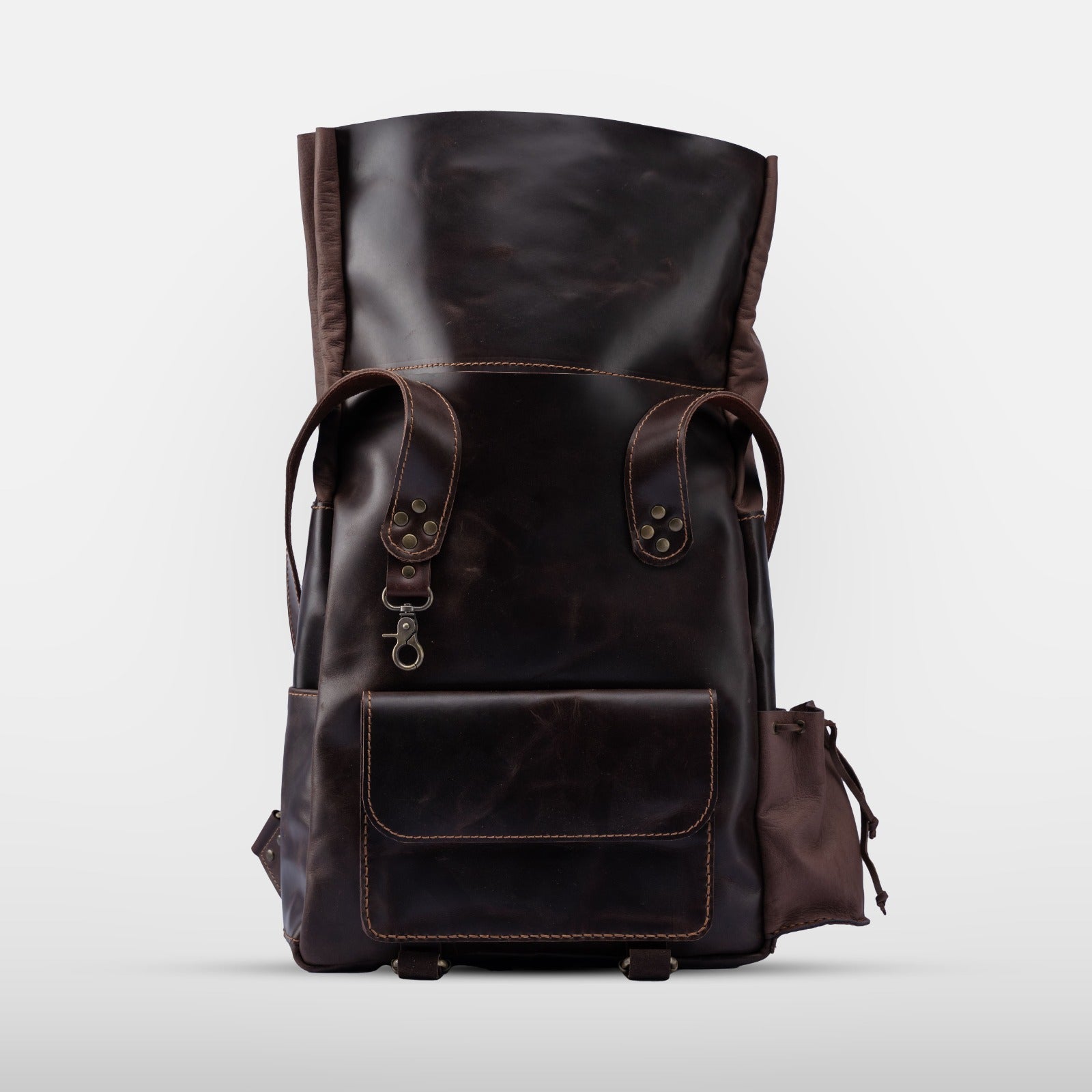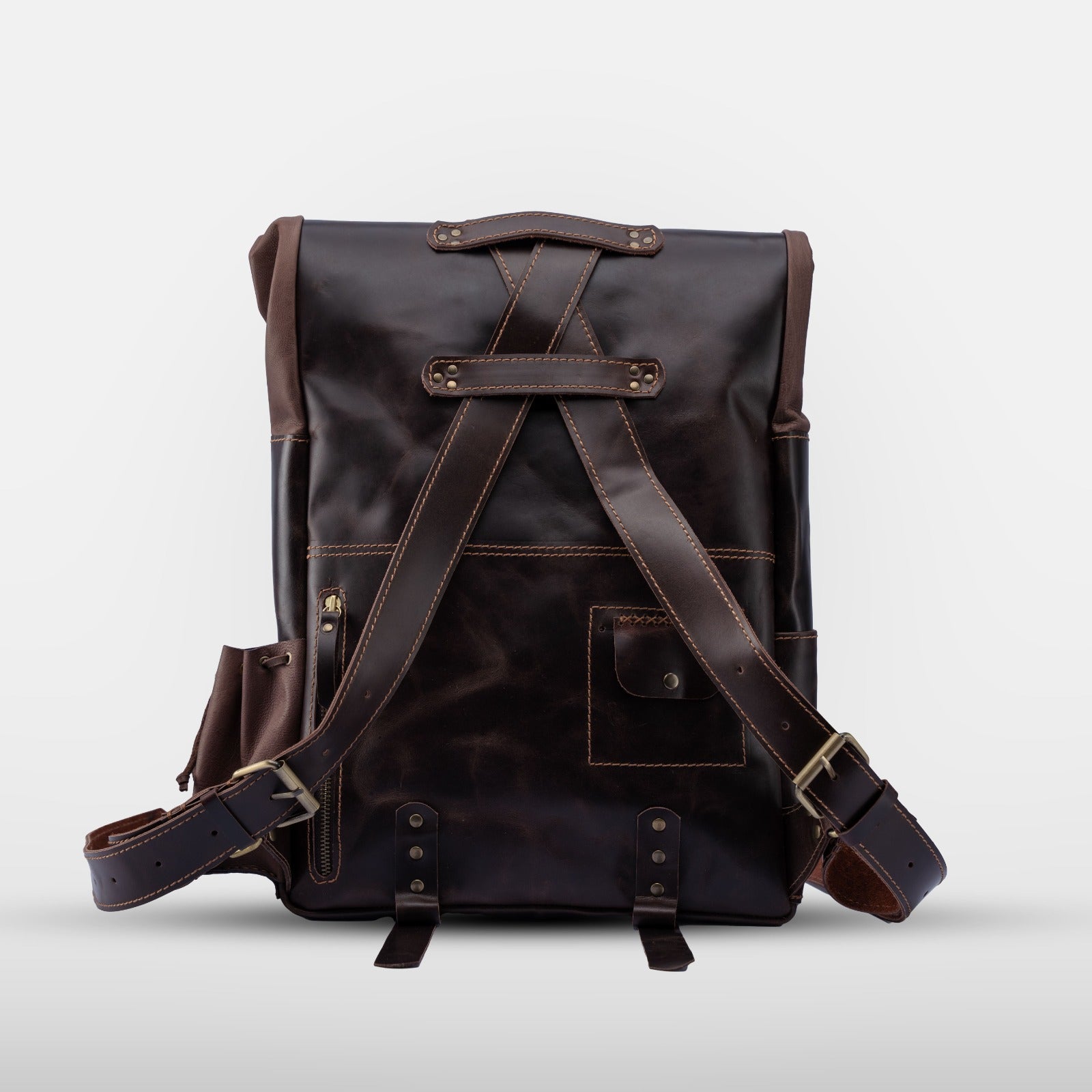 The Safari Backpack is a versatile, expandable leather bag designed to adapt to your needs. With three adjustable levels, it transforms based on how much you're carrying: